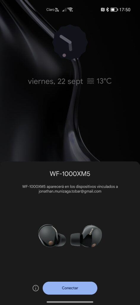 Solo basta con dejar presionado el botón del estuche de carga por unos segundos cerca de un dispositivo Android y en pantalla veremos lo siguiente:
