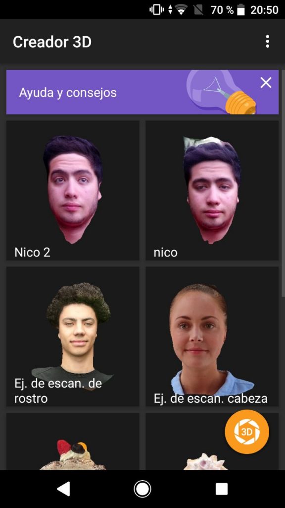 Esto es algo que llama bastante la atención, porque de verdad es un creador de imágenes tercera dimensión, el que sirve para luego poder imprimir objetos en una impresora 3D, o solamente poder usar el rostro de quien tu quieras scannear, para crear algo así como emojis o personajes vivientes dentro de tu dispositivo y poder compartirlo en redes sociales.