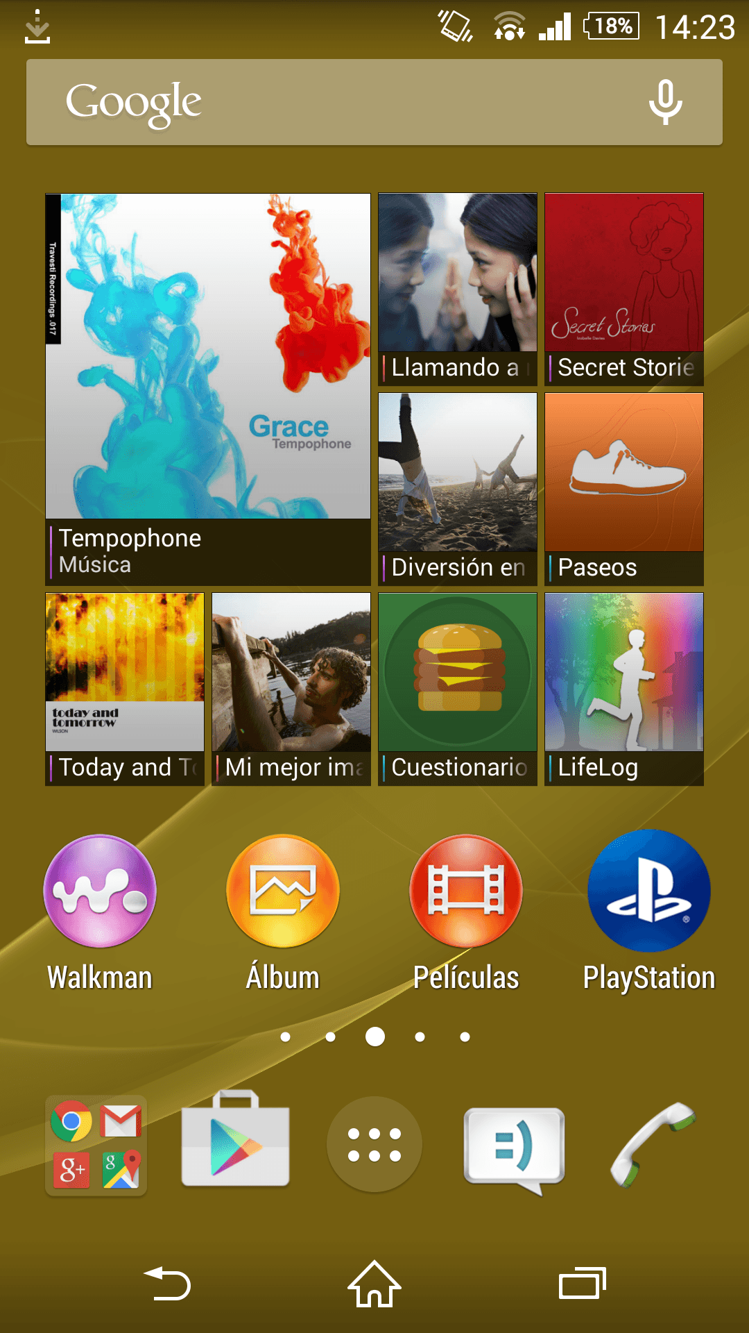 De inicio nos encontraremos con un escritorio repleto de widgets y aplicaciones de Sony, dentro de las cuales está Walkman, Álbum y PlayStation, por ejemplo.