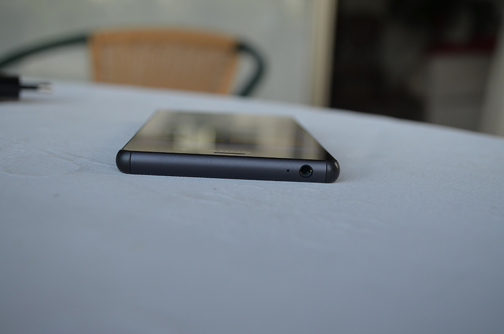 Los materiales se notan muy firmes y el teléfono es muy elegante, aunque la parte trasera no termina de tener una buena superficie que permita un agarre contundente con una mano. En la parte superior vemos la entrada 3,5 mm para audio y nada más.