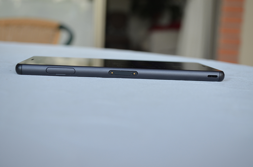 El diseño del Xperia Z3 es muy similar al de su predecesor, aunque con algunas mejoras importantes. Por ejemplo, los bordes redondeados hacen que se sienta mejor al tomarlo con una mano y además dan una sensación de mejor calidad de los materiales. En el lado derecho del equipo nos encontramos con el botón de encendido/apagado/bloqueo y bajo el está el control de volumen. Además, está la ranura para MicroSD y Nano SIM, la cual tiene una cubierta de goma para evitar la entrada de agua o polvo.