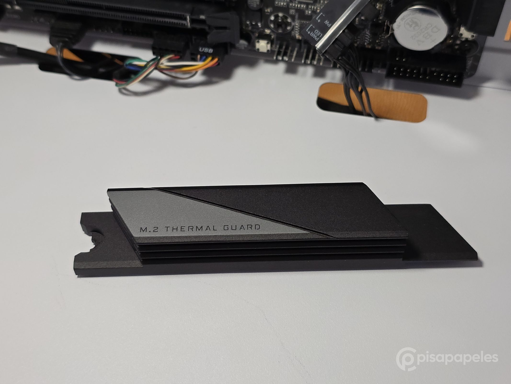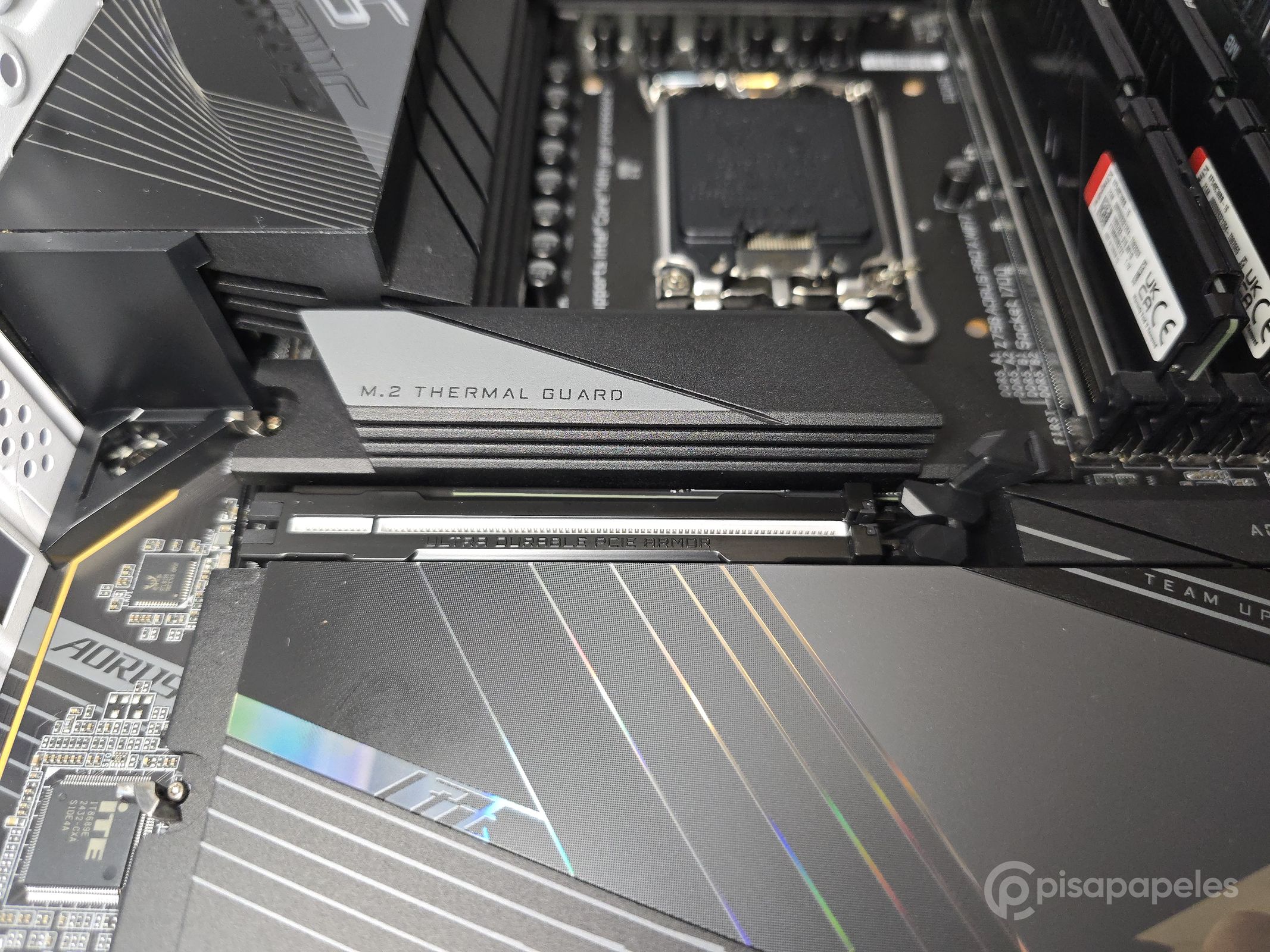 Si hablamos de la gestión de la temperatura, el TeamGroup T-Force Z540 de 1TB incluye una lámina de grafeno, la cual es perfecta para ser usada en computadores portátiles o equipos sin disipador. De todos modos, si se usa en un PC de escritorio las placas madre de alta gama usualmente traen elementos de disipación pasiva, como es el caso de nuestra placa Z790 AORUS PRO X W-Fi 7, por lo que la temperatura será un elemento variable según sea el caso.