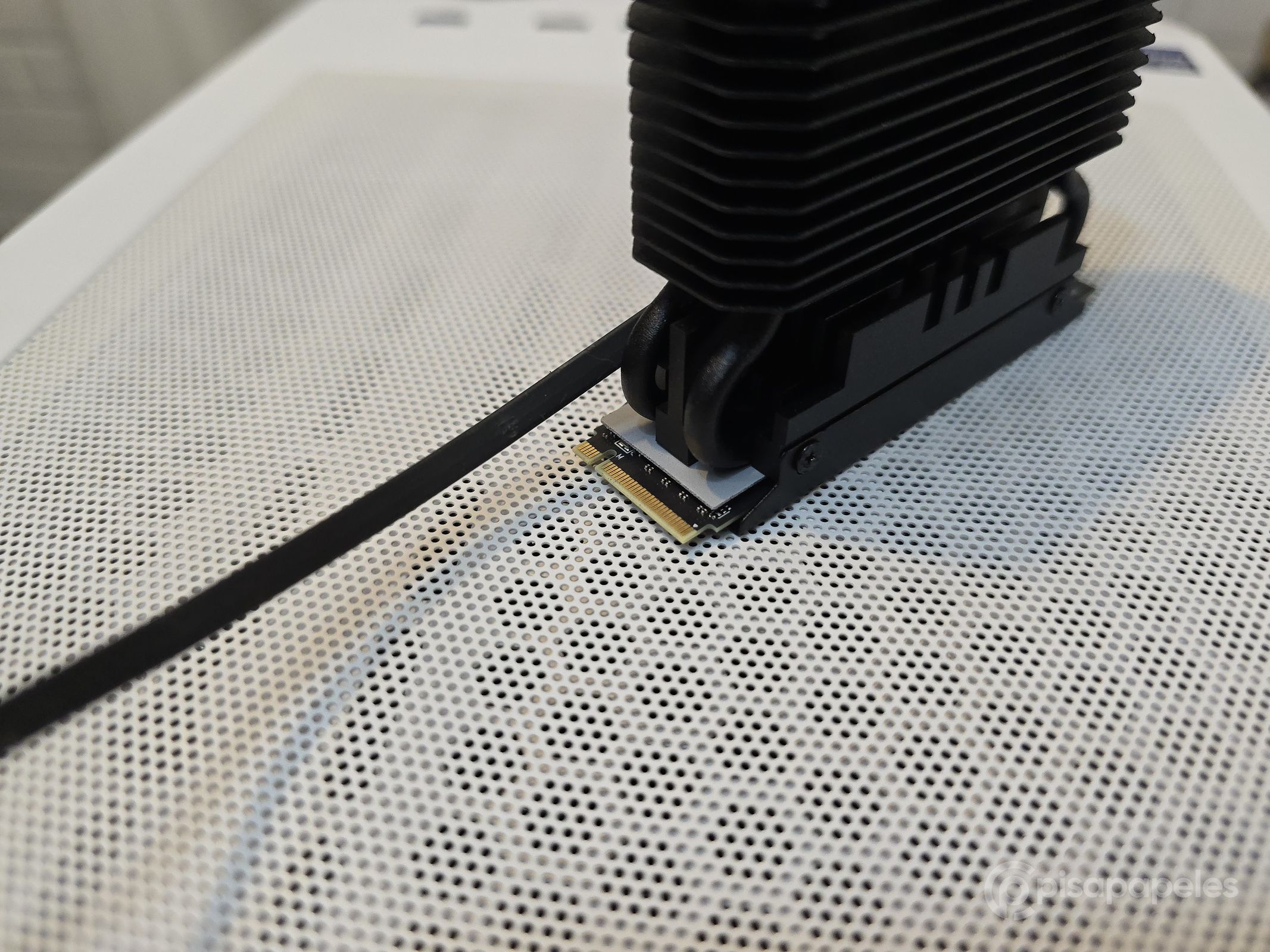 La instalación es muy sencilla e incluye todo lo necesario, sólo es sacar 4 tornillos e instalar el SSD con los pads térmicos que vienen incluidos, y eso es todo. Y como mencionamos antes, las instrucciones vienen al interior de la caja.