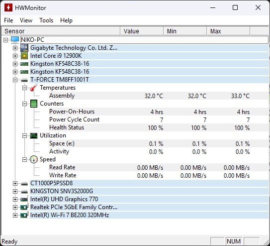 Como es evidente, también pusimos a prueba el SSD con el T-Force Dark AirFlow I, y la verdad es que el resultado mejoró muchísimo en comparación al disipador stock de la placa madre que es pasivo. En este sentido, en reposo (idle) la temperatura conseguida fue de 32°C, mejorando en 1 grado respecto al disipador stock de la placa base.