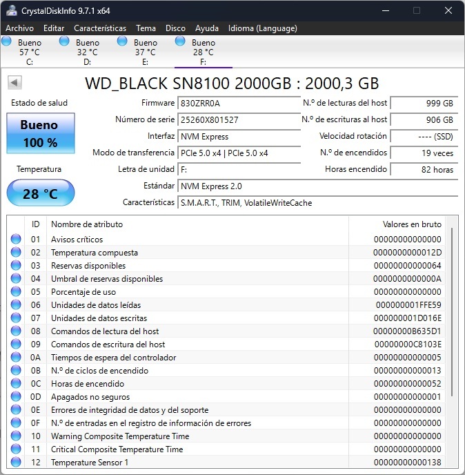Después de probar exhaustivamente al nuevo SSD interno WD_Black SN8100 de 2TB por varias semanas en múltiples escenarios, la experiencia de uso ha sido totalmente destacable y satisfactoria en todos los aspectos. Y voy directamente con argumentos detallados sobre varios puntos clave de la unidad. Es un dispositivo muy rápido tanto en velocidad de lectura como en velocidad de escritura, maneja excelentemente bien las temperaturas bajo carga, y se nota que SanDisk/Western Digital han logrado un salto generacional muy importante e impresionante con el WD_Black SN8100 de 2TB en comparación directa a la generación anterior que es el SN850X.