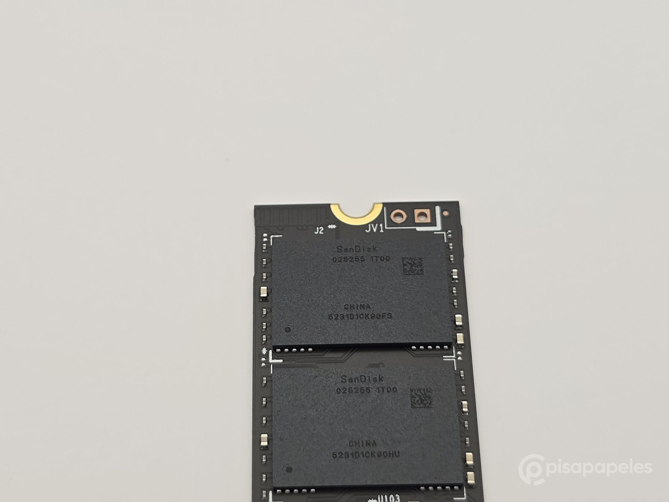 La unidad flash consiste en una memoria BiCS8 fabricada por Kioxia. La unidad flash también está compuesta por una NAND 3D TLC de 218 capas. A su vez está desarrollada con las técnicas más avanzadas disponibles en la industria. Los 2TB de espacio están distribuidos de manera óptima en 2 chips de 1 TB cada uno para distribuir adecuadamente la carga. Este enfoque inteligente permite distribuir el desgaste de manera uniforme entre todos los chips, extendiendo significativamente la vida útil proyectada del SSD.