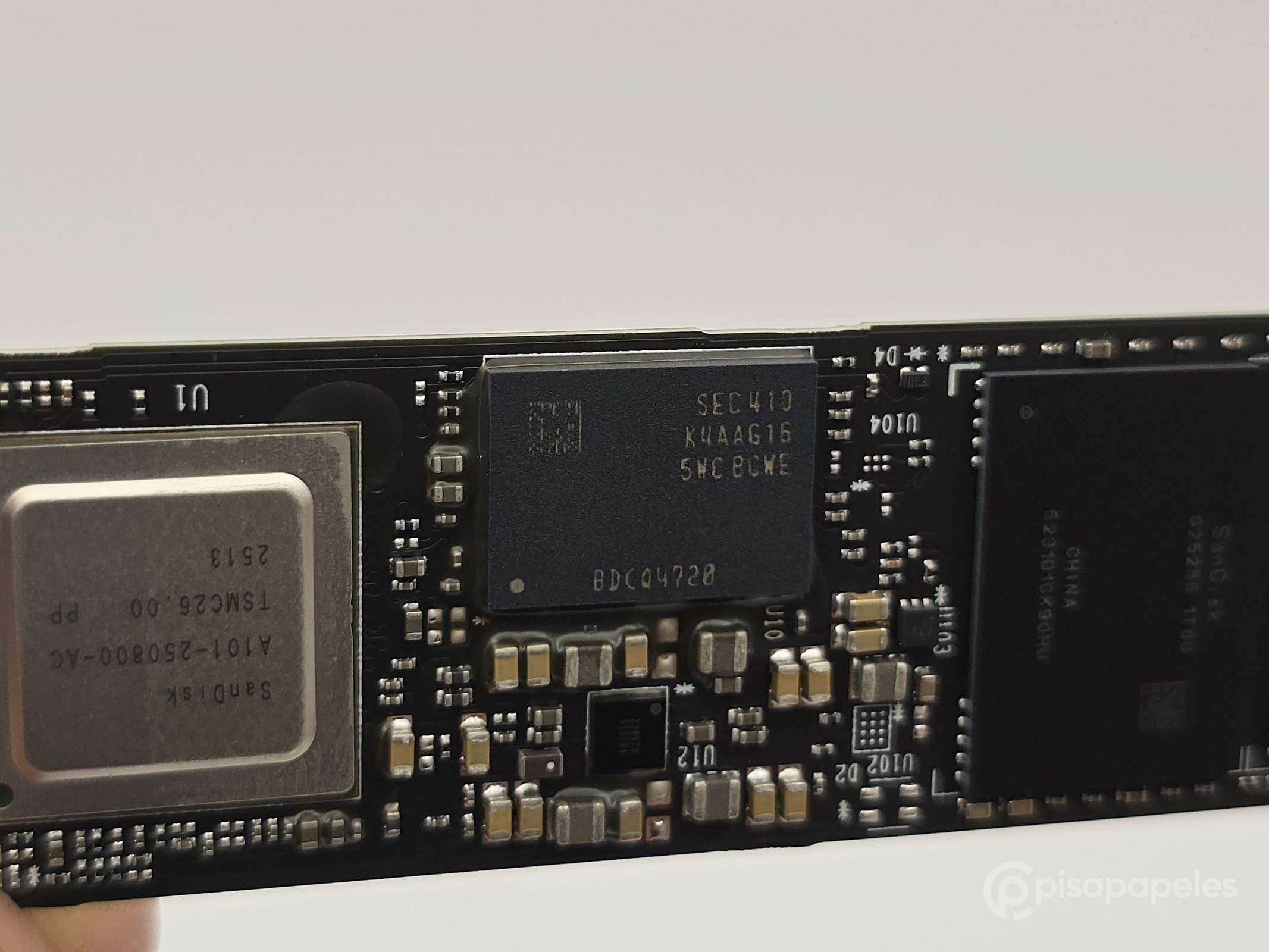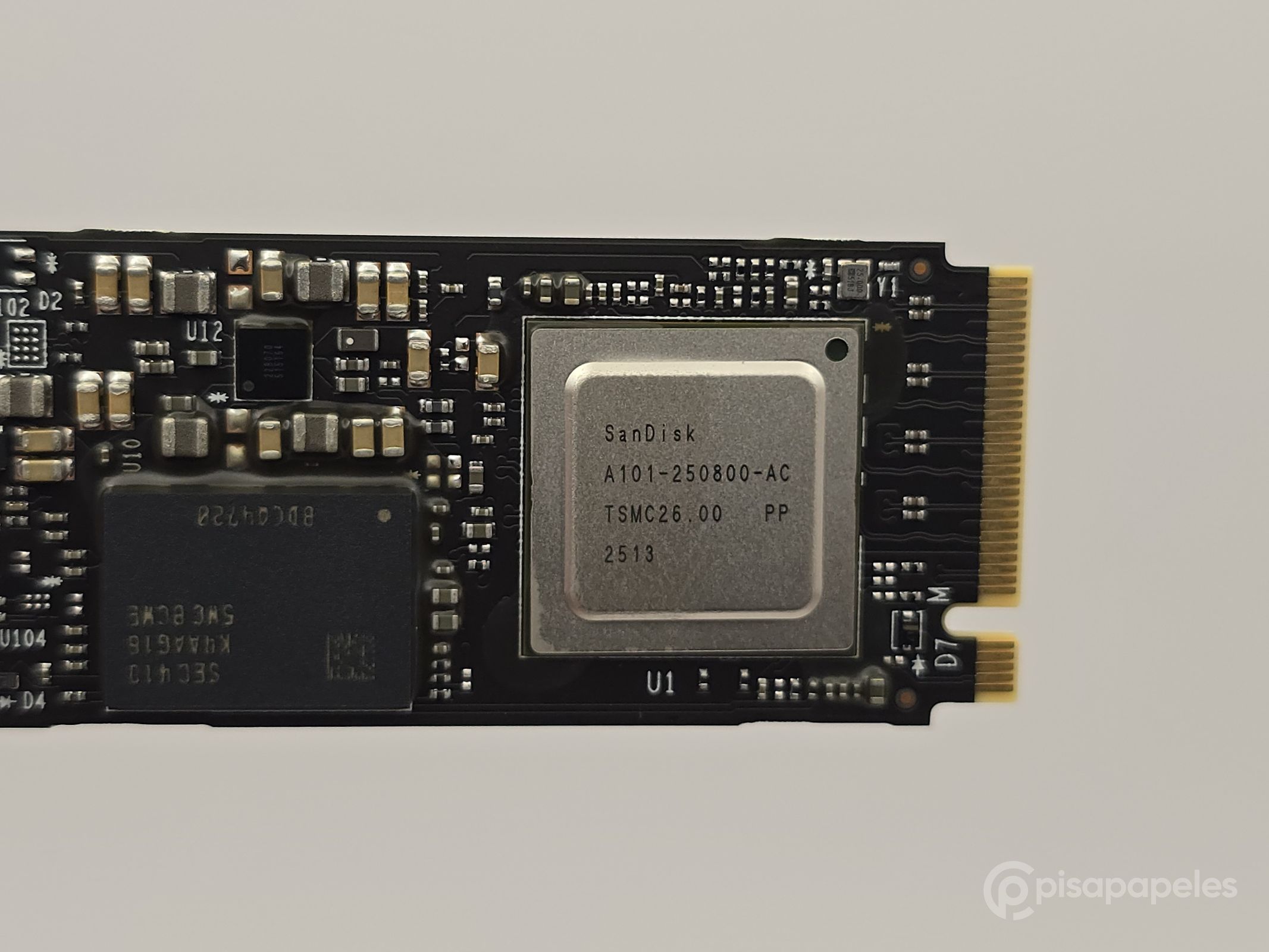 Ahora para conocer un poco más a fondo técnicamente a nuestro protagonista, el WD_Black SN8100 de 2TB está conformado por un controlador Silicon Motion SM2508 rebrandeado como SanDisk A101-250800-AC de última generación. Este controlador es fabricado por TSMC y ha sido optimizado y diseñado específicamente para aprovechar al máximo el ancho de banda disponible en PCIe 5.0 sin comprometer la eficiencia energética ni la estabilidad térmica bajo cargas intensas.