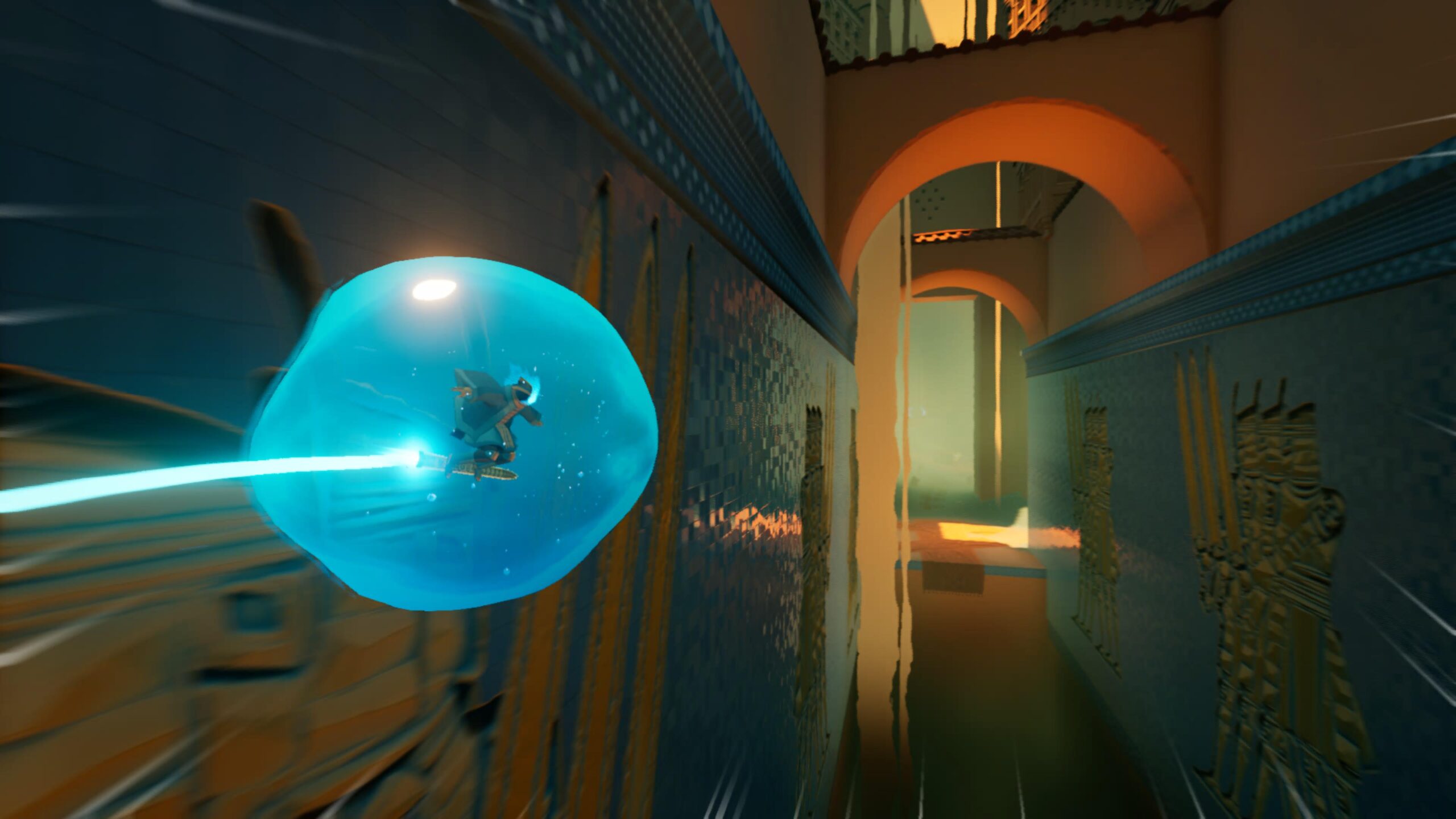 Es interesante cómo Giant Squid logra que el movimiento con esta tabla se sienta muy natural, integrando la fluidez del surf y la adrenalina y creatividad de deportes como el snowboard o el skate. La mecánica está muy bien lograda, pulida y se vuelve adictiva cuando dominas los controles, que son súper sencillos. En el juego, moverse y saltar por los escenarios no es solo la forma de alcanzar objetivos, sino que es la experiencia de entretención en sí misma.