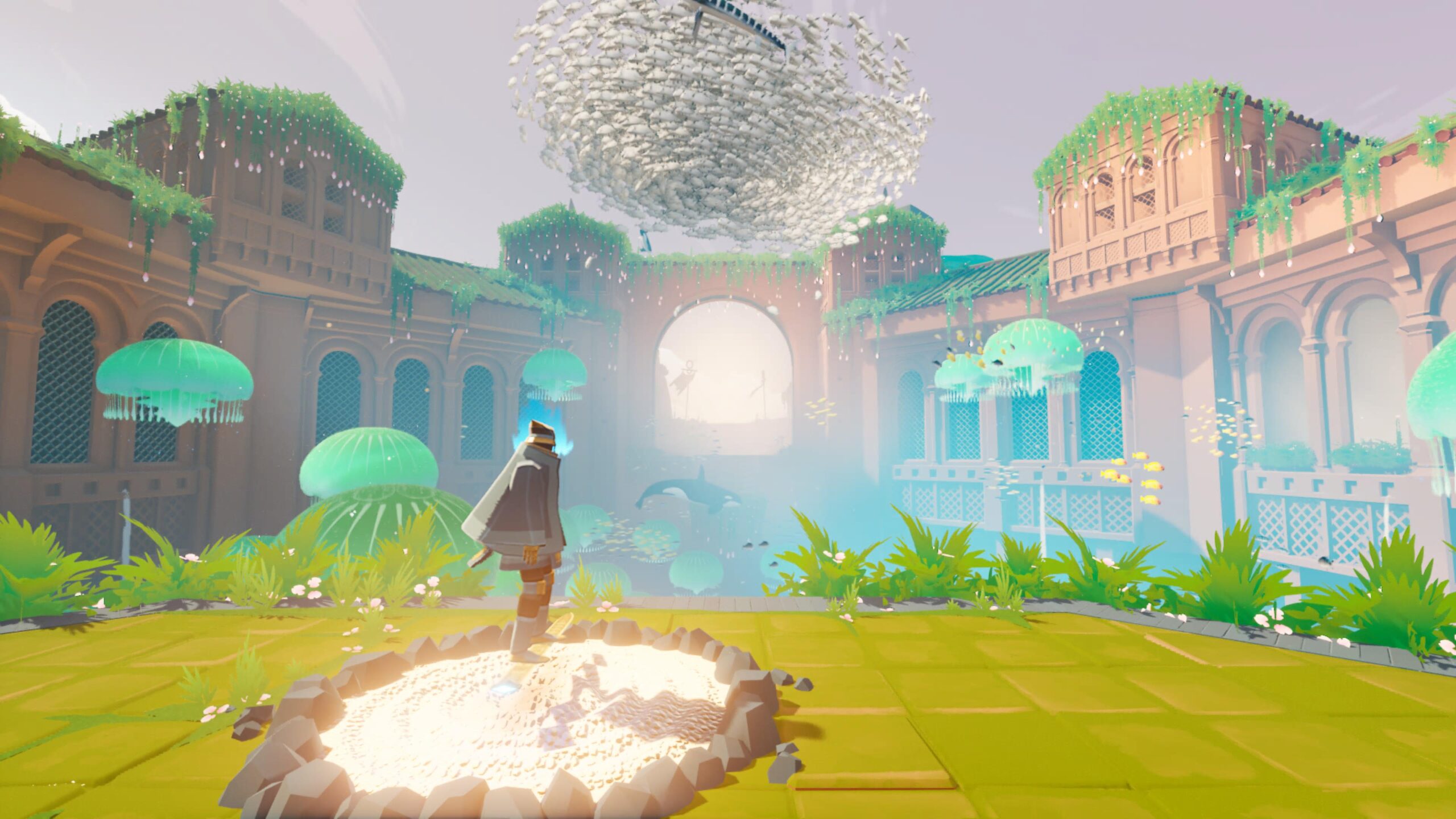 En pantalla no hay marcadores, HUD ni mapas; la exploración depende exclusivamente de la curiosidad del jugador a medida que se mueve por lo que ve. Este minimalismo potencia la sensación de descubrimiento y conecta con lo mejor de Journey y The Pathless.