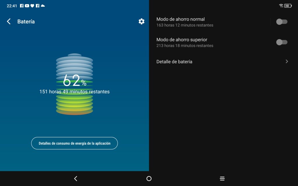Incluso, la misma Tablet te dice que teniendo un 62% de carga en la batería, tendrás más de 100 horas de uso aproximado. Y cuando llegue el momento de recargar la batería, la Tablet es compatible con carga rápida de 18W, y lo mejor de todo es que incluye su propio cargador en la caja.
