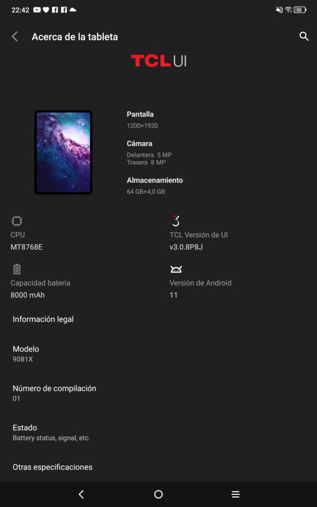 - Procesador: MediaTek MT8768 de ocho núcleos