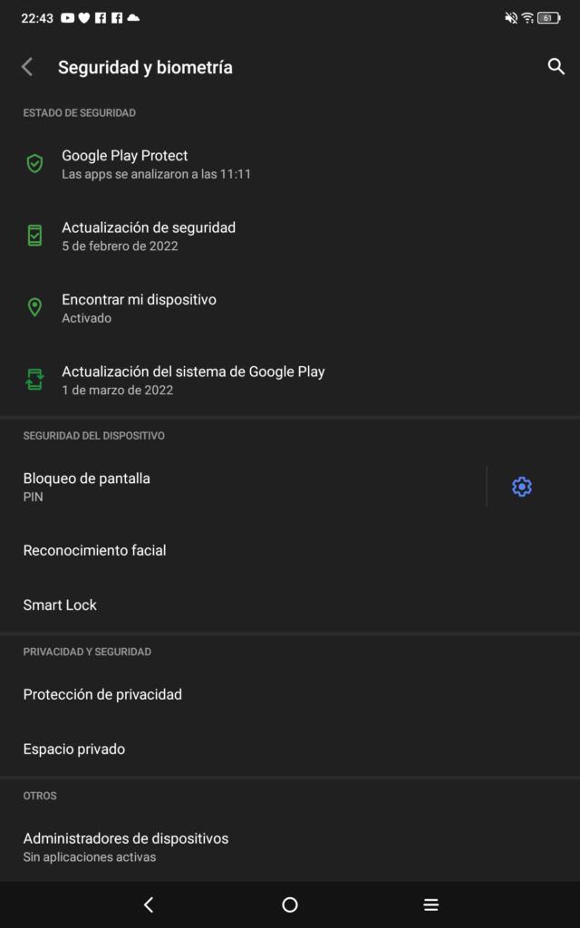 En este apartado solo vamos a poder utilizar nuestros queridos patrones o ingresar una clave, ya que no contamos con un lector de huellas lamentablemente. Sin embargo, sí podemos usar su cámara frontal como desbloqueo facial que es lo que yo utilizaba, y debo decir que funcionaba bastante bien, siempre y cuando existiera buena iluminación a tu alrededor.