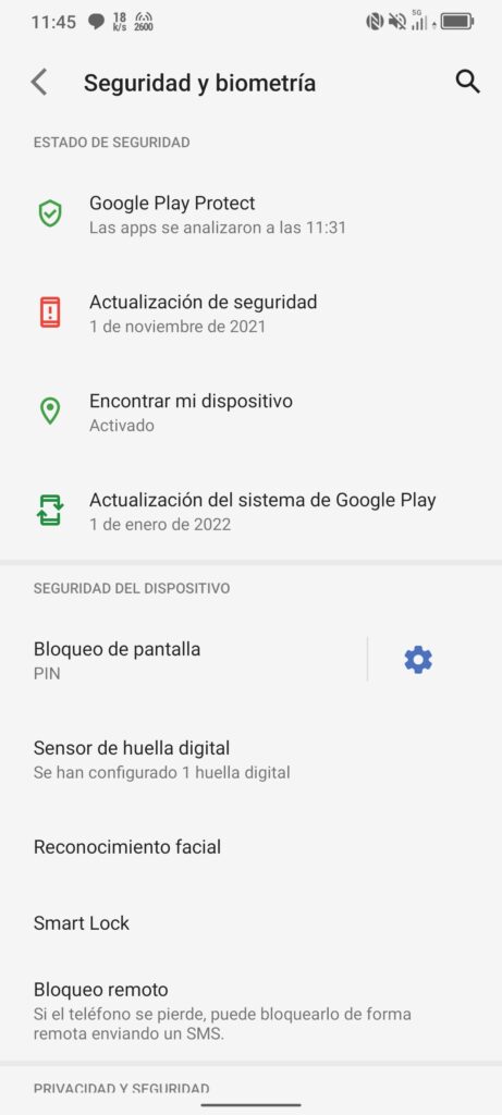 Nuestro protagonista cuenta con un lector de huellas óptico ubicado bajo la pantalla el cual funcionaba bastante bien. Sin embargo, en caso de que no te guste usar ese método de seguridad, también vamos a poder usar el reconocimiento facial usando la cámara frontal del móvil, tal cual como lo demuestra la siguiente captura.