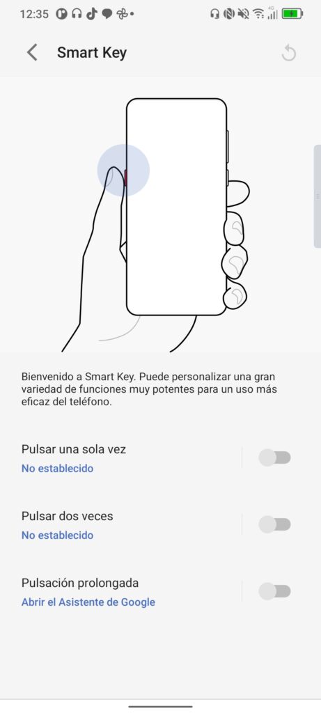 Luego tenemos el Smart Key, una tecla que tenemos en el lado izquierdo del equipo y que podemos usarla para varias funciones. Podemos activarla con solo presionarla una vez, dos veces o dejarla presionada, cada acción activará tres funciones.