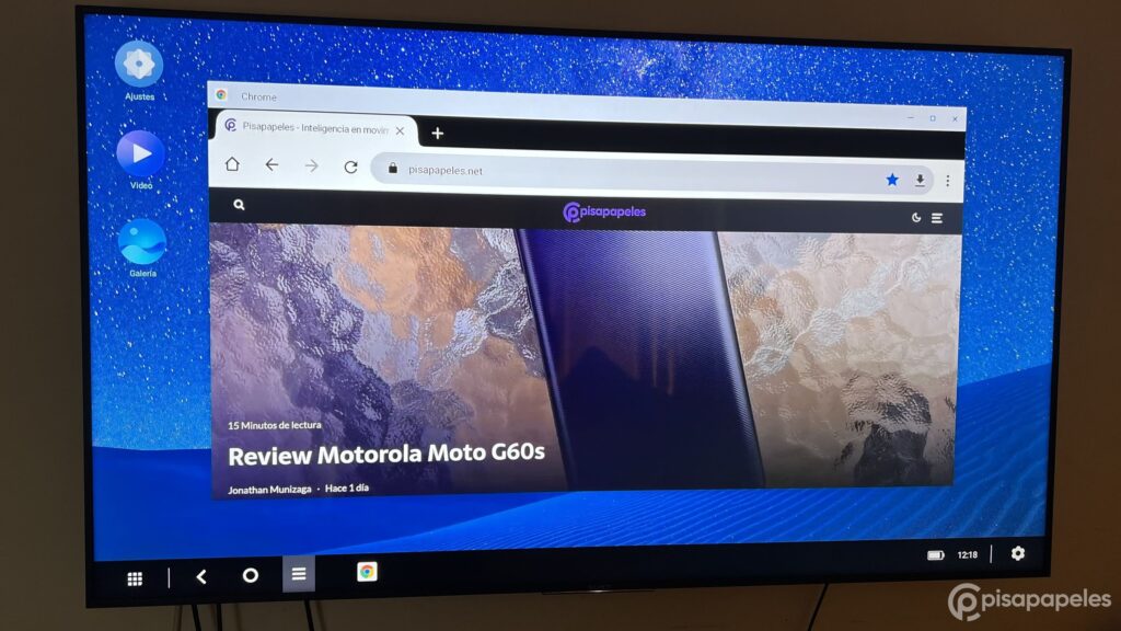Una vez que te conectas, la pantalla del móvil actuará como touchpad y también como teclado cuando necesitemos escribir algo, mientras que en la pantalla verás una interfaz de escritorio donde podrás usar tus aplicaciones instaladas en el equipo y visualizarlas en la pantalla grande. Todo funcionaba excelente.