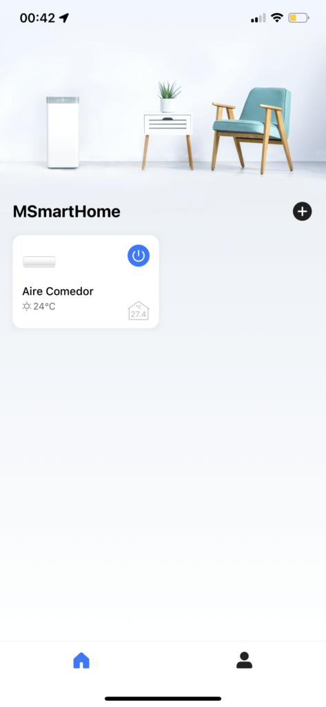 Tanto en Android como iOS, Midea tiene una aplicación llamada MSmartHome la cual nos permite agregar y vincular los dispositivos inteligentes de nuestro hogar y que sean de la compañía. Para conectar al dispositivo, en el caso del aire acondicionado, basta que activemos la función en el equipo y busquemos la red a través de la aplicación. Luego de vincularlo a la red Wi-Fi 2,4 GHz local el dispositivo ya está integrado en la app.