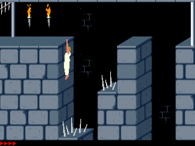Elegir cuidadosamente el momento correcto para dejarnos caer desde el borde de un risco hacia el suelo lleno de espinas, para caer en esa plataforma que esta justo fuera de alcance de la cámara.