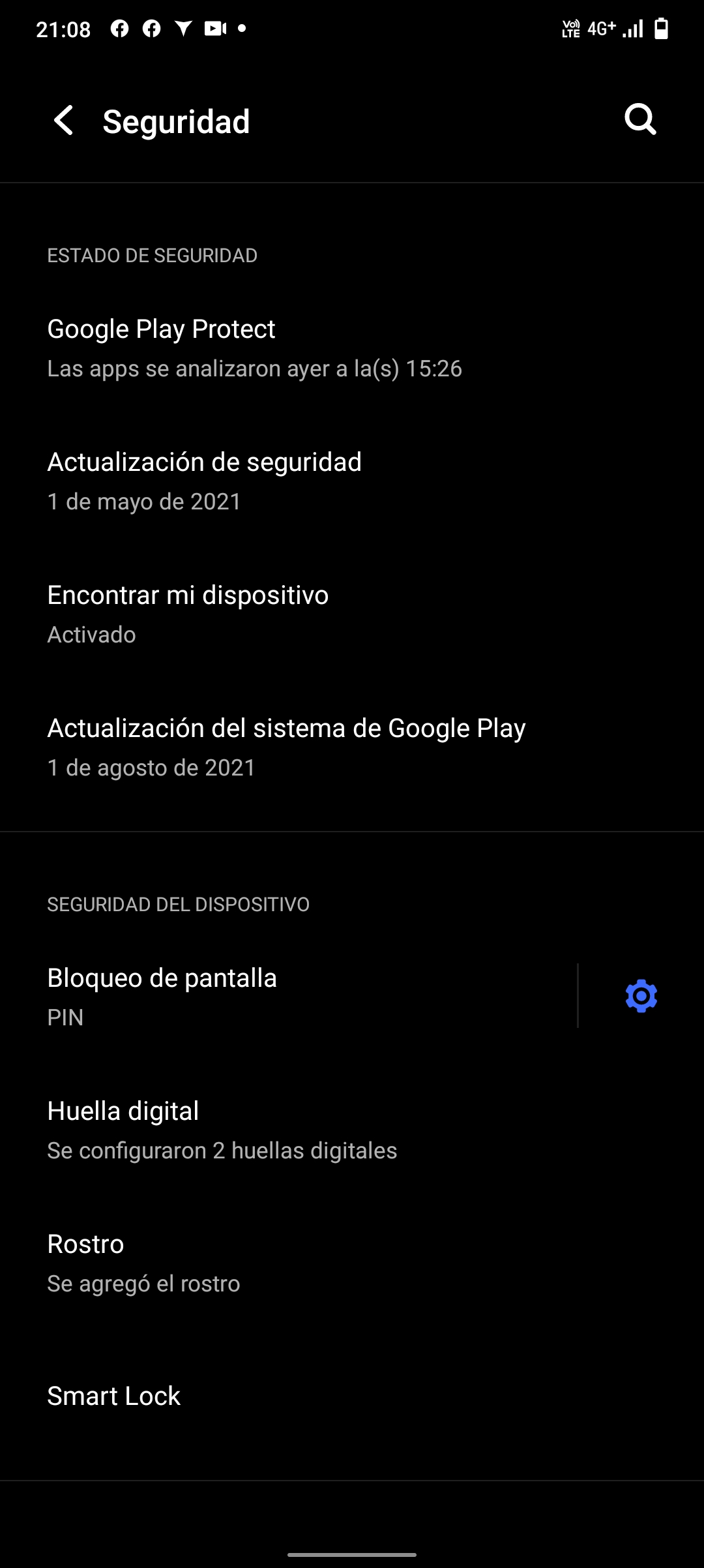 También tenemos como método de seguridad el reconocimiento facial utilizando su cámara frontal, el cual funciona bastante bien, pero no es la alternativa más segura y recomendable de usar, por lo que yo me quedaría con el lector de huellas. De igual manera, el reconocimiento es rápido si hay buenas condiciones de luz, pero obviamente no funciona cuando tienes la mascarilla puesta.