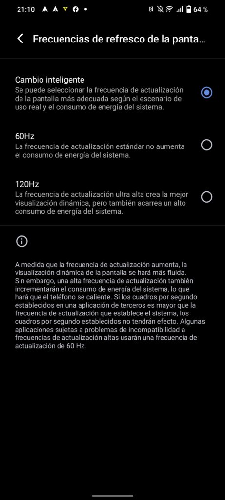 También tenemos su tasa de refresco que alcanza los 120Hz, pero de fábrica viene configurado con la opción “Cambio inteligente”, la que se va adaptando de acuerdo al tipo de contenido mostrado y así ahorra energía. De igual manera, puedes elegir que esté siempre en 60Hz o 120Hz.