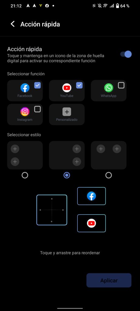 Pero eso no es todo, ya que incluso puedes asignar una o dos aplicaciones (las que tu quieras), para que, por ejemplo, si quieres acceder rápidamente a WhatsApp, dejar presionada tu huella sobre el ícono de WhatsApp y el equipo al reconocer tu huella, inmediatamente abrirá la app correspondiente, todo esto te lo muestro en el video de demostración.