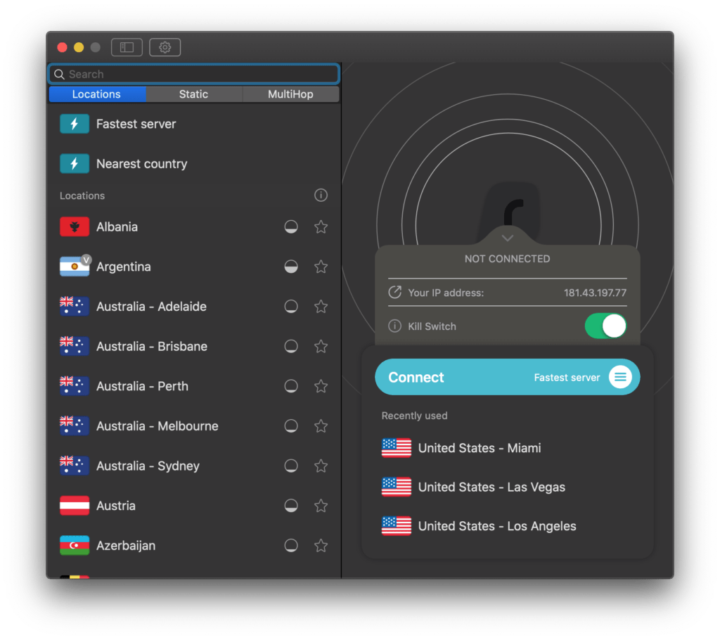 - Kill Switch: Si ocurre un problema con la conexión al VPN, corta el internet para que no utilices tu tráfico regular.