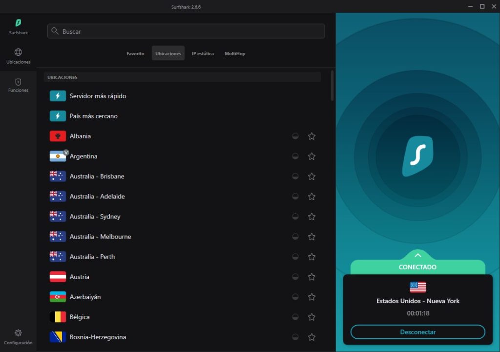 SurfShark ofrece más de 1700 servidores en múltiples países. Pasando por casi toda Europa, múltiples puntos de Estados Unidos, algunos países de Latinoamérica y otros más de Asia y Oceanía. La lista completa la puedes ver aquí.