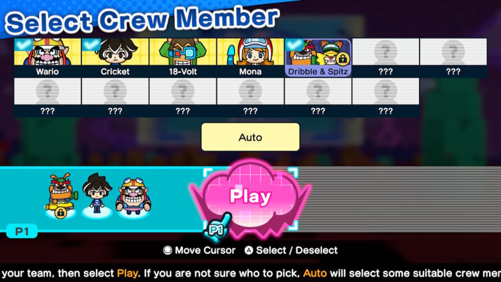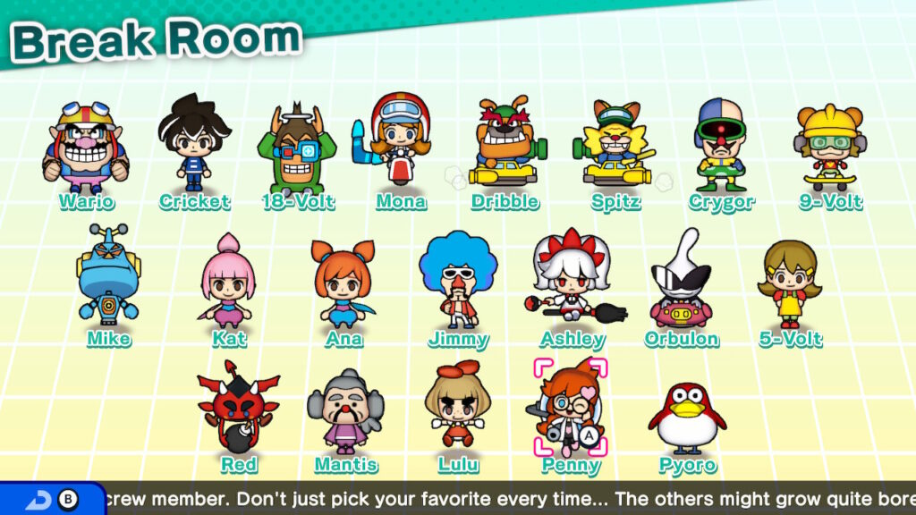 Como mencioné, una de las mayores gracias de WarioWare: Get It Together! es que podemos formar un equipo de 3 o 4 personajes por mundo para desbloquear personajes, y es aquí donde si queremos sacarle el máximo provecho al frenesí de juegos y toma de decisiones, lo recomendable es hacer uso del botón de al azar que tenemos para que el mismo juego determine nuestro equipo en cada mundo.