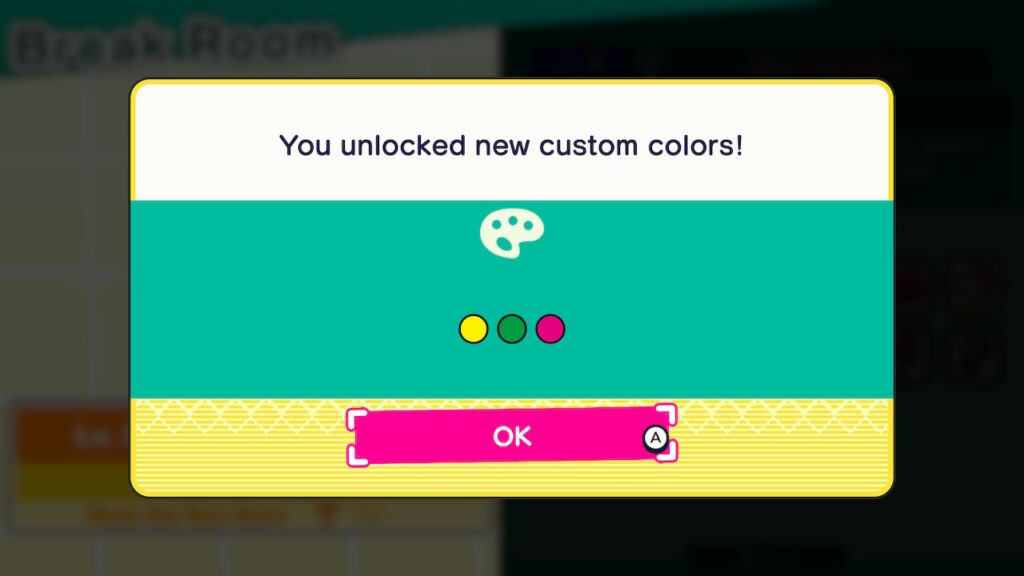 Una vez ha subido el nivel de dicho personaje, se nos desbloquearán paletas de colores alternativas para dichos personajes y hasta algunas pinturas que podemos ver luego en la galería. Y hasta existe un apartado de «logros», donde si cumplimos con cierta meta se nos otorgará un premio en forma de monedas.