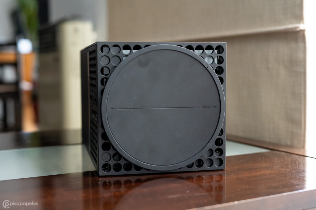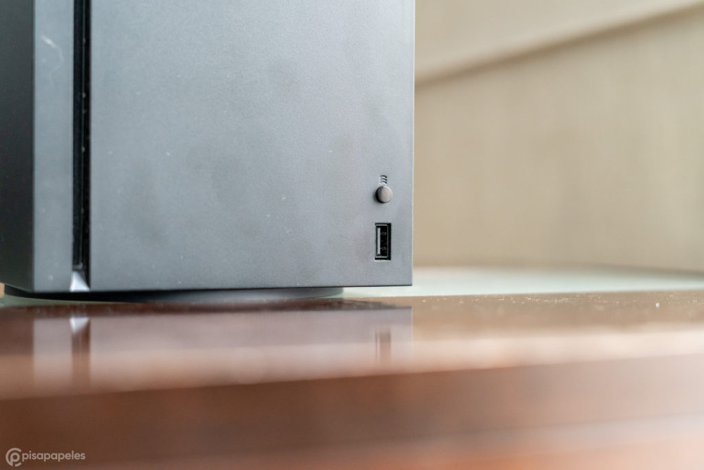 Series X es una caja negra — es prácticamente un paralelepípedo —, y por algo casi todo internet lo compara con un refrigerador. Porque en verdad se parece a uno, especialmente cuando lo dejamos en posición vertical.