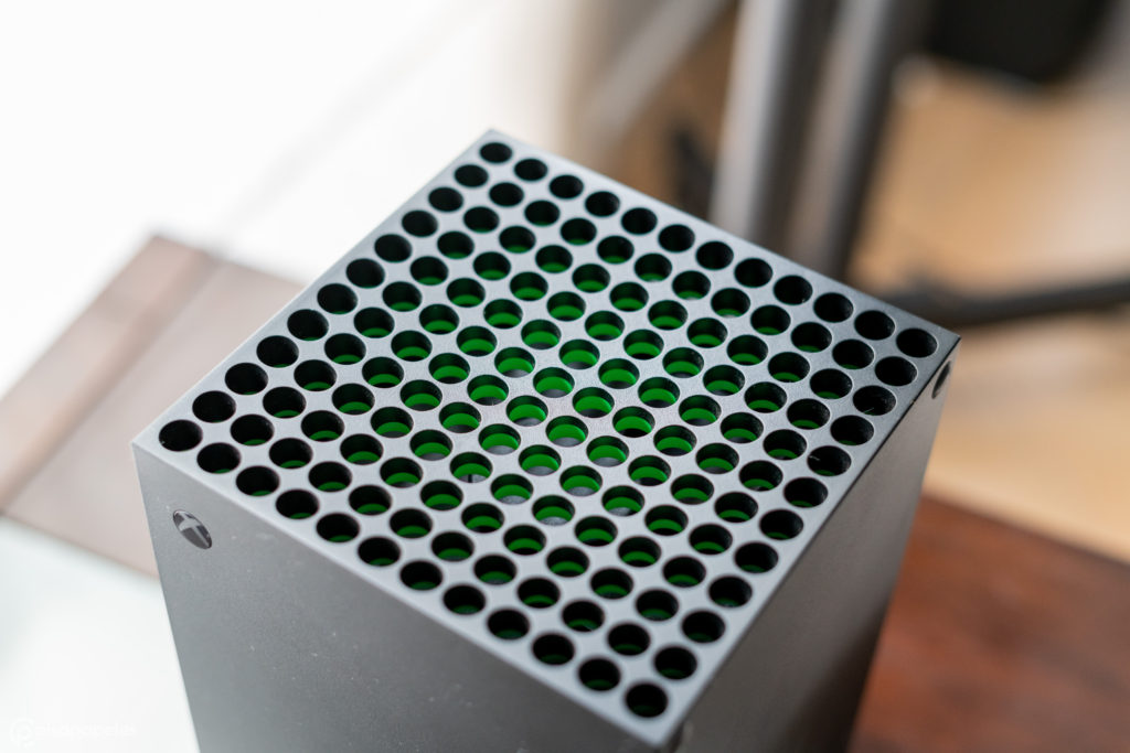 La Xbox Series X mantiene el mismo «lenguaje» de diseño (si se puede decir así) que venimos viendo, más o menos, desde la Xbox 360 E y Xbox One, es decir, con bastantes ángulos rectos y caras cuadradas o rectangulares.