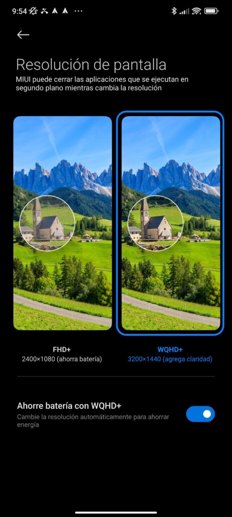 Como estamos ante una pantalla con resolución WQHD+, sabemos que esto consumirá más energía. Por lo mismo, el sistema te deja poder bajar la resolución a Full HD+ para ahorrar batería. En mi caso, yo lo mantuve en WQHD+ durante el tiempo que lo usé.