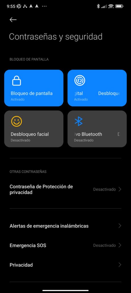 Acá tenemos tres maneras de poder bloquear el dispositivo. La primera es el clásico patrón o código de seguridad, la segunda es el desbloqueo facial que utiliza la cámara frontal, y la tercera es su lector de huellas óptico que está bajo la pantalla que fue la alternativa que utilicé.