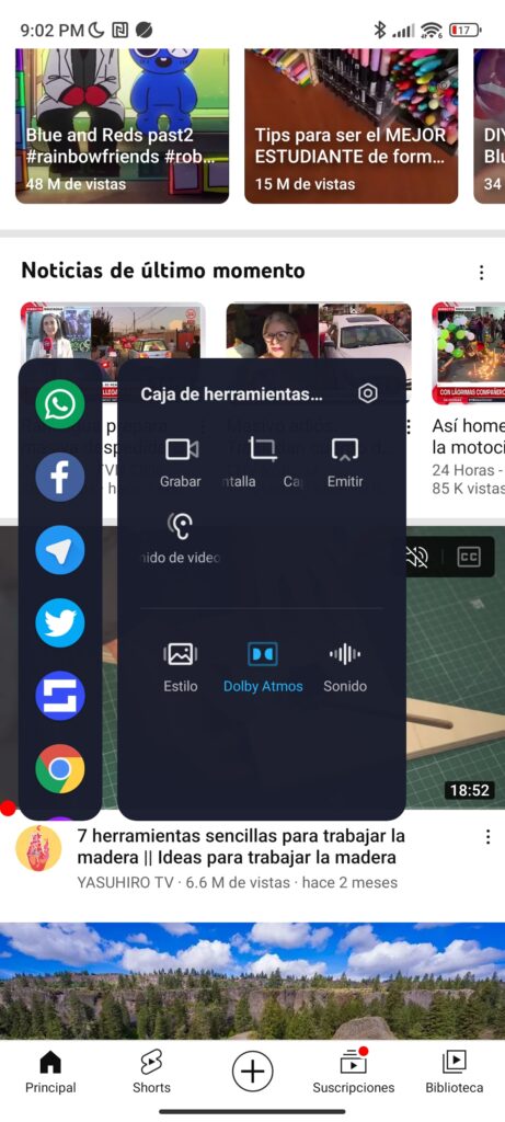 También tenemos la opción de activar el Dolby Atmos o de lanzar una pequeña ventana para usar WhatsApp, Facebook, Twitter o una que otra aplicación que queramos. Esto se puede desactivar, pero es útil.
