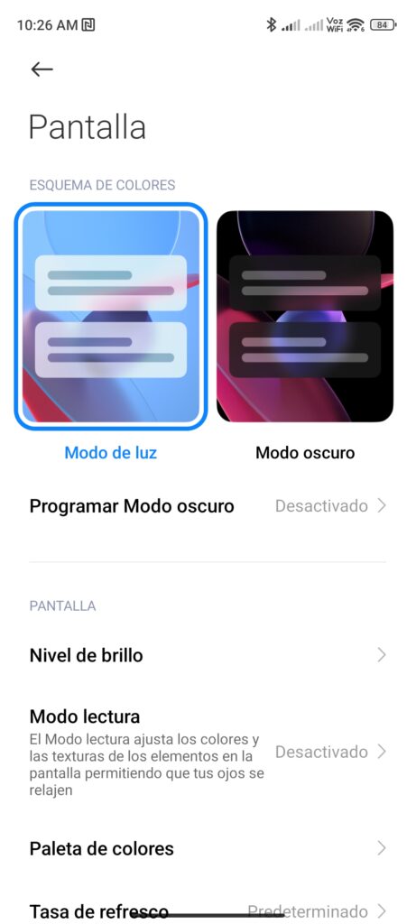 Como es de esperarse, tenemos la opción de usar el teléfono a 60Hz también. Incluso de cambiar la tonalidad de los colores del panel. Y es que MIUI nos deja flexibilizar el uso del smartphone a nuestro más absoluto antojo.