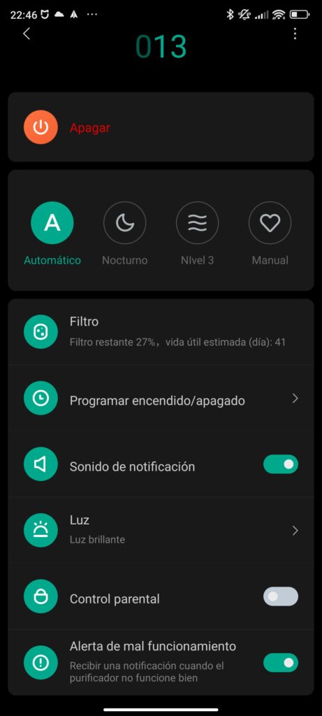 Finalmente, podemos activar una opción para que recibamos una notificación en nuestro smartphone cuando se detecte un mal funcionamiento del purificador.