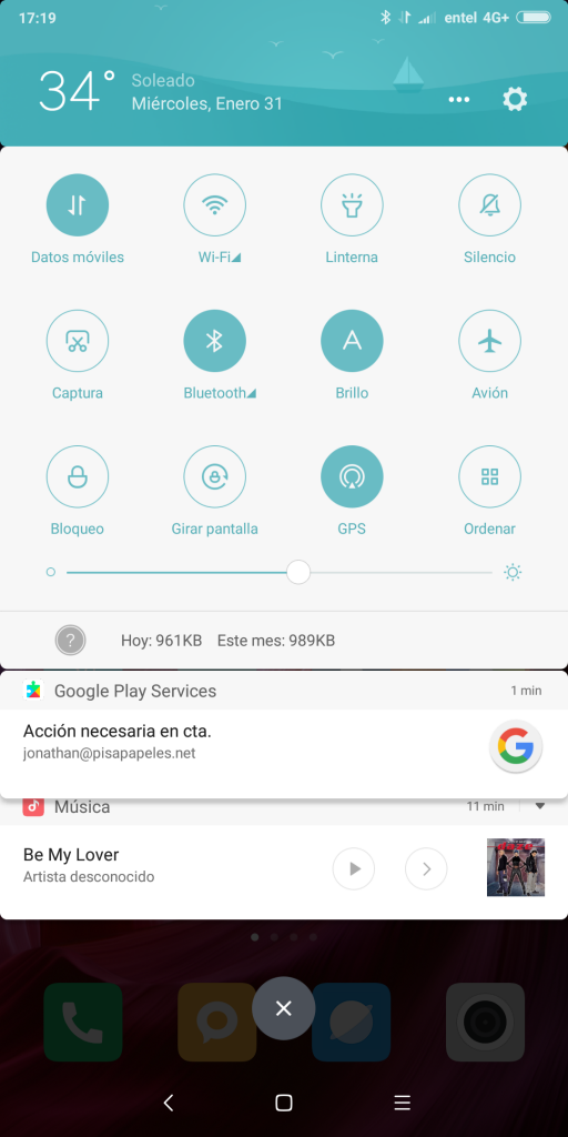 Aplicaciones usadas (aparte de los juegos): Twitter, Facebook, Messenger, Google Chrome, Google Now, Google Asistant, Apple Music, Gmail, YouTube, Net Monitor Lite, Speedtest, Chile Alerta, Instagram y Telegram.