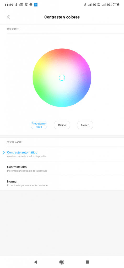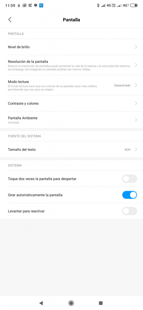 Entre las opciones que tienes disponibles para la pantalla encontrarás la posibilidad de ajustar el brillo y activar la opción para que se ajuste automáticamente. También podrás activar el modo lectura, modificar el contraste y los colores (cálido, frío o normal), así como también ajustar el tamaño del texto, entre otras opciones.