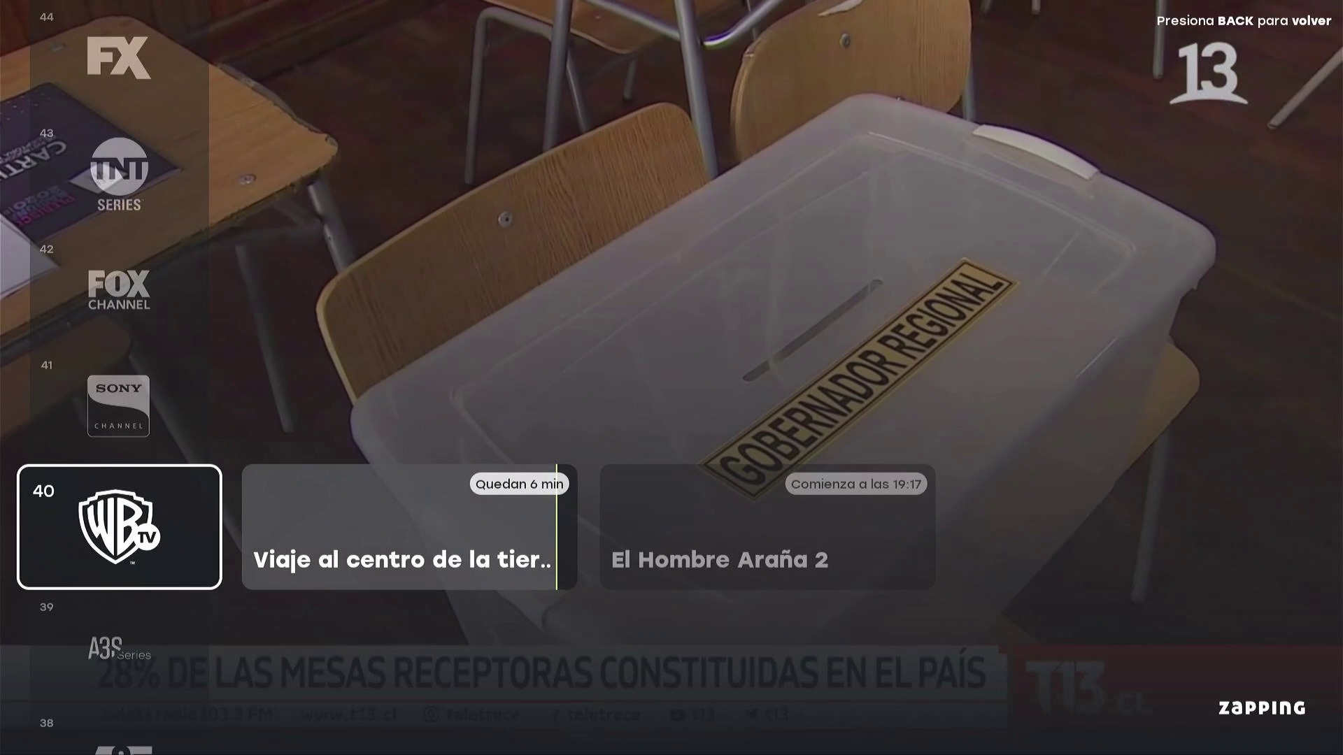 Eso sí, hay 36 segundos de delay entre Chilevisión (señal digital por aire en Santiago) y CFD HD de Zapping. Sé que son diferentes canales, pero es la única alternativa que te ofrece Zapping.