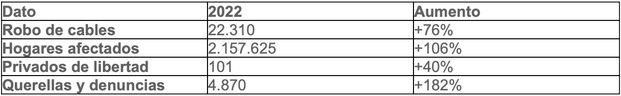 En el 2022 hubo 5.000 querellas y denuncias por robo de cables de cobre y vandalismo en la fibra óptica, lo que significa un aumento del 200% en comparación con el año pasado.