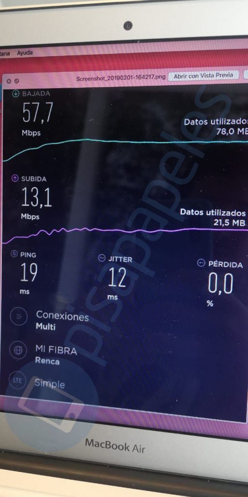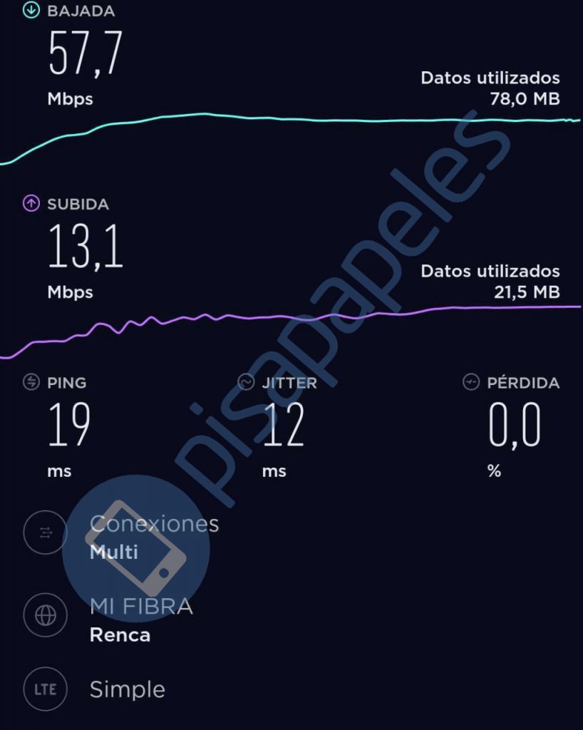 Como podemos apreciar en dichas imágenes, la red 4G de Simple estaría ofreciendo una velocidad promedio de unos 50Mbps aproximadamente, nada mal para ser una OMV. Recordemos que Simple Móviles trabaja en las redes móviles del operador Movistar.