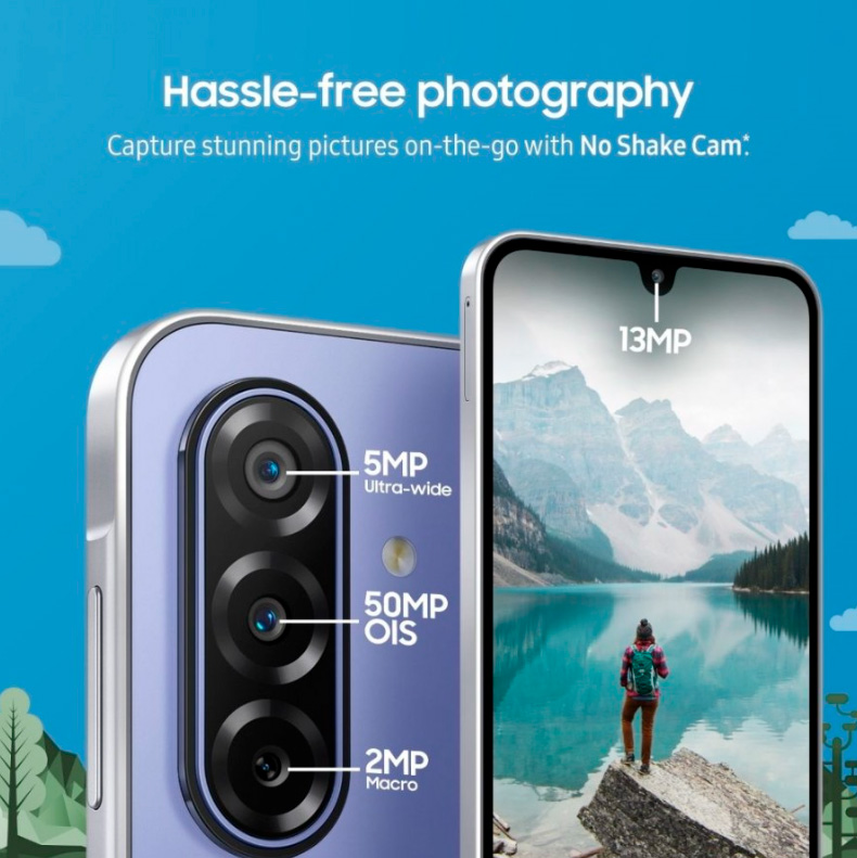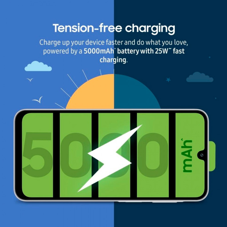 Porta el procesador Exynos 1330. La RAM varía entre 4GB y/o 6GB. El almacenamiento interno se ubica en 128GB con posibilidad de ampliarlo mediante una MicroSD de hasta 2TB.