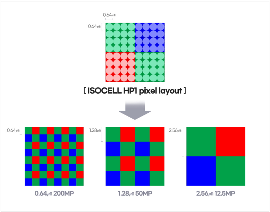 Este sensor estrena la tecnología ChameleonCell, el cual permitirá cambiar la forma en la que se agrupan los píxeles según el entorno, tal cual como lo demuestra la siguiente imagen: