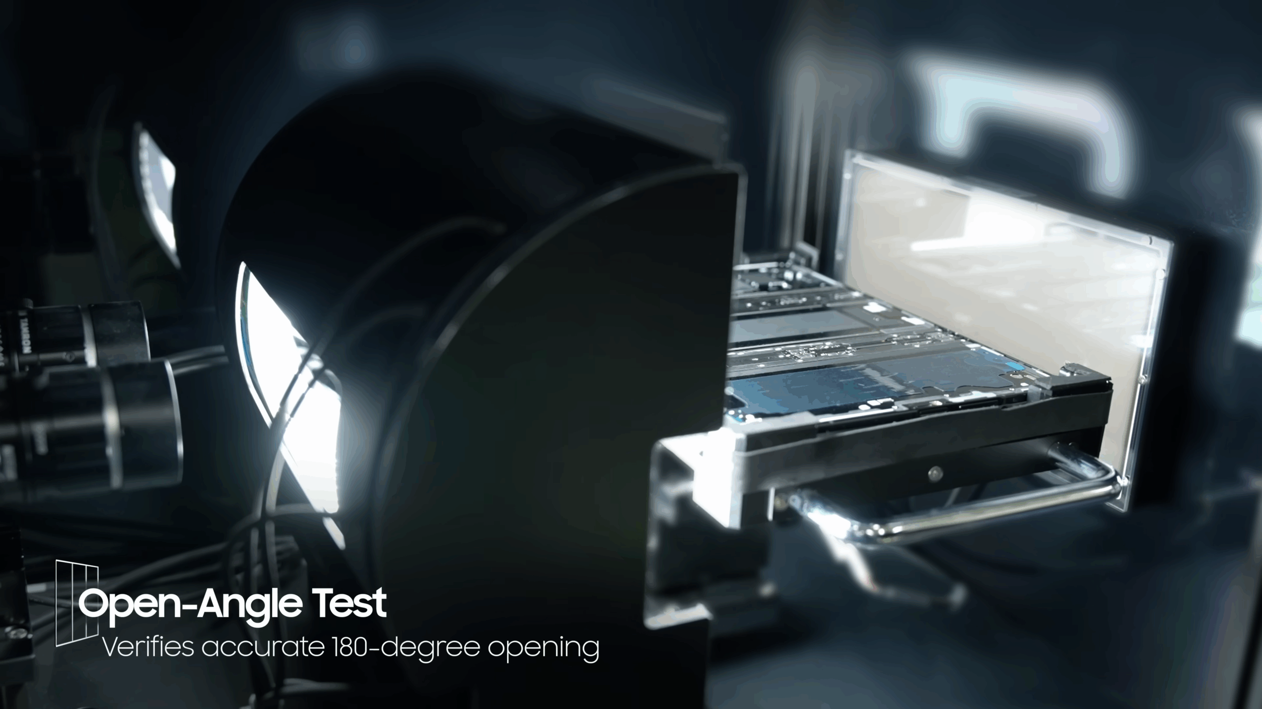 Durante esta etapa, el dispositivo se somete a un ensayo de plegado múltiple que busca replicar años de uso diario. El sistema automatizado opera el dispositivo de manera repetitiva para observar la respuesta de la bisagra y del panel central en cada secuencia de cierre y apertura.