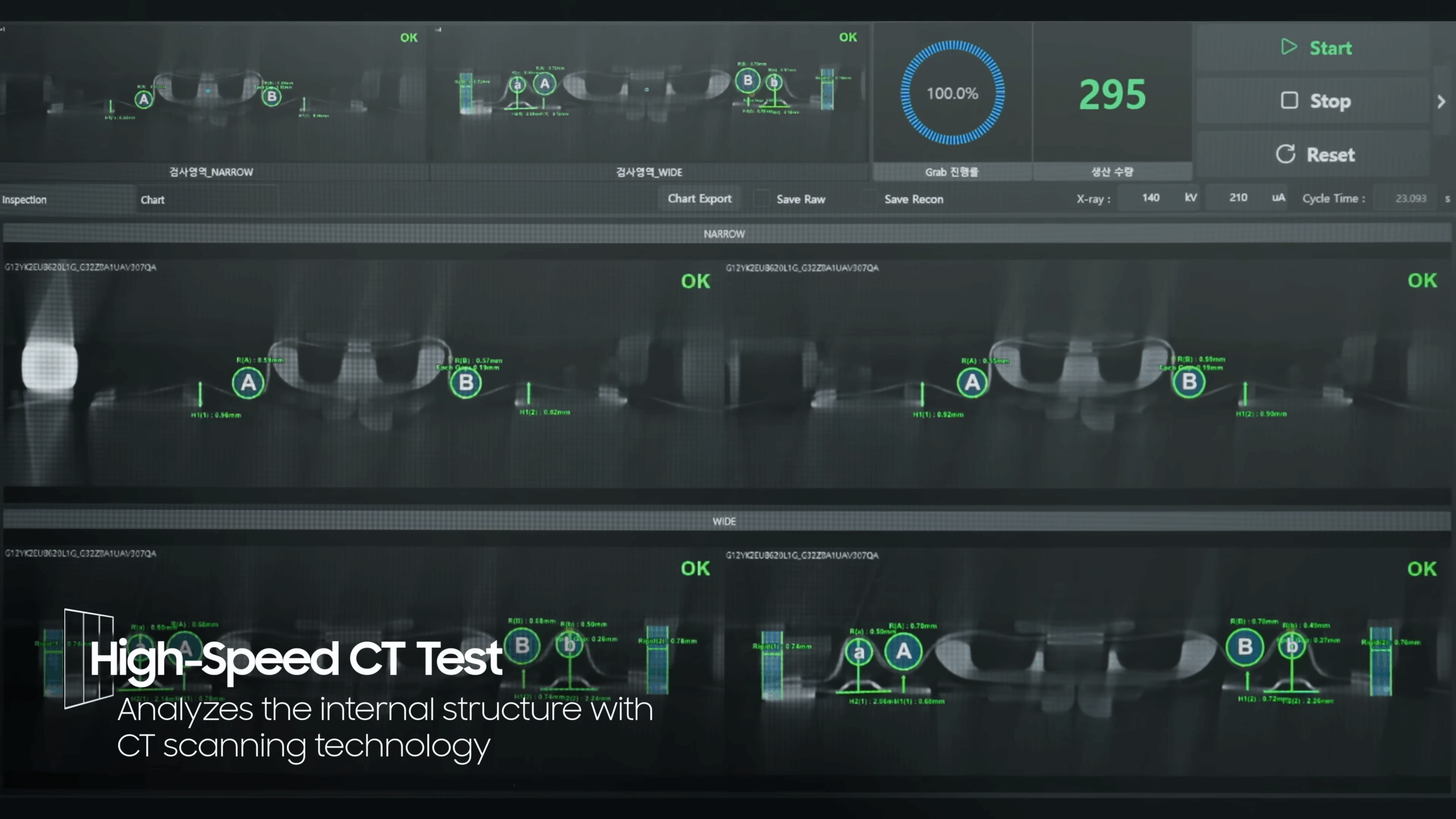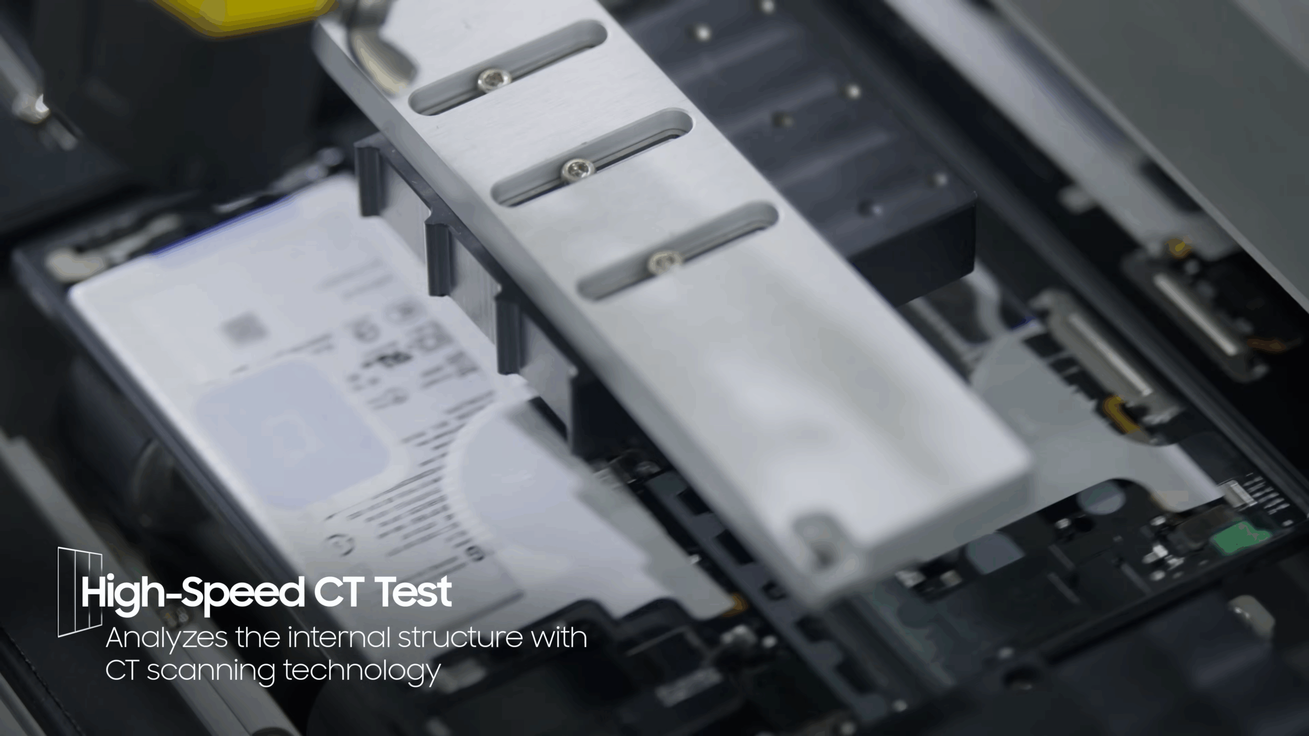 En esta fase, el dispositivo pasa por distintos equipos que realizan exploraciones mediante tecnología CT de alta velocidad. Estas pruebas revisan la estructura interna, validan la posición de los componentes y detectan posibles inconsistencias antes de integrarlos en el módulo final.