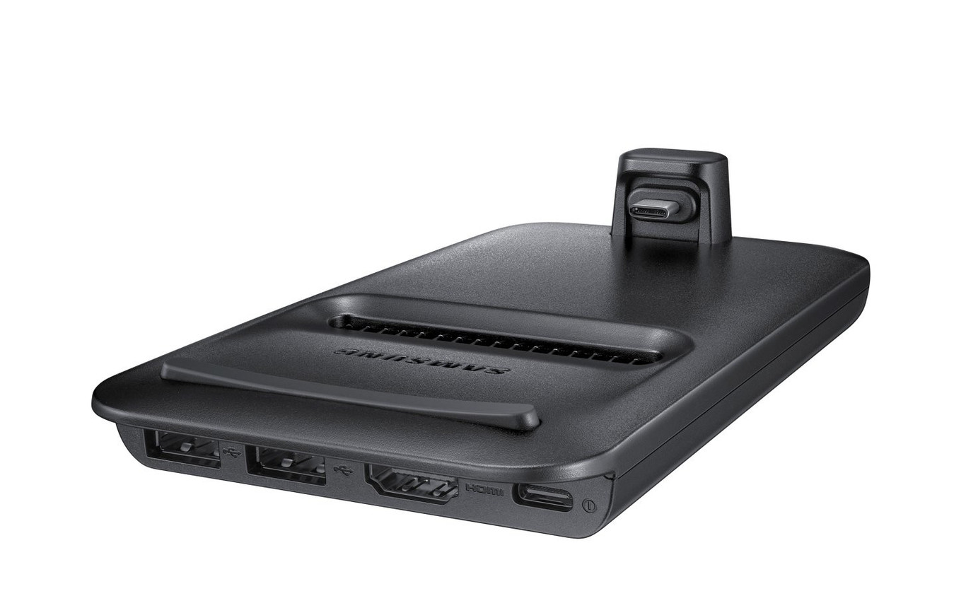 La DeX Pad está conformada por dos conectores USB tipo A (los «comunes» de toda la vida), una entrada HDMI, un conector USB tipo C para la corriente y el conector USB tipo C de su parte superior para enchufar nuestro smartphone.