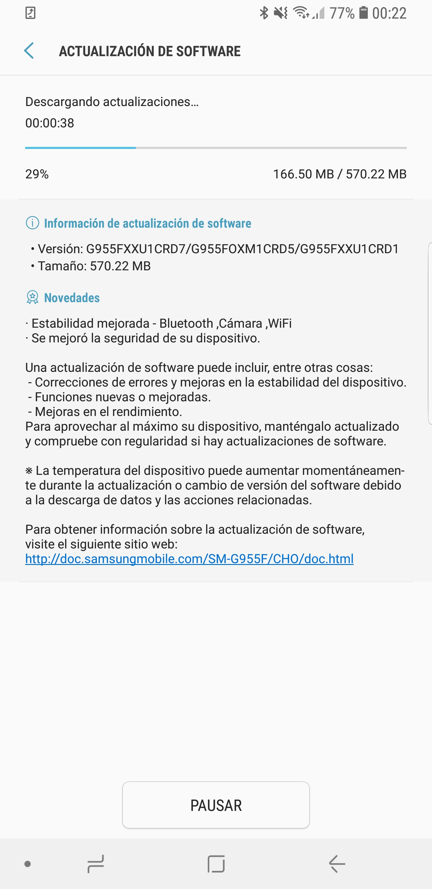 Dicha actualización ha comenzado a llegar a las variantes SM-G950F y SMG955F que son comercializados en nuestro país de manera libre. Tiene un peso aproximado de unos 550MB y entre las novedades destacan una mayor estabilidad en la cámara, Bluetooth y Wi-Fi de los dispositivos.