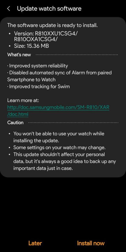 Identificada como R810XXU1CSG4, hasta ahora solo ha estado llegando a los relojes en su versión de 42 y 46 mm ubicados en Estados Unidos, aunque se espera que con el pasar de los días comience a llegar al resto de los países donde está disponible.