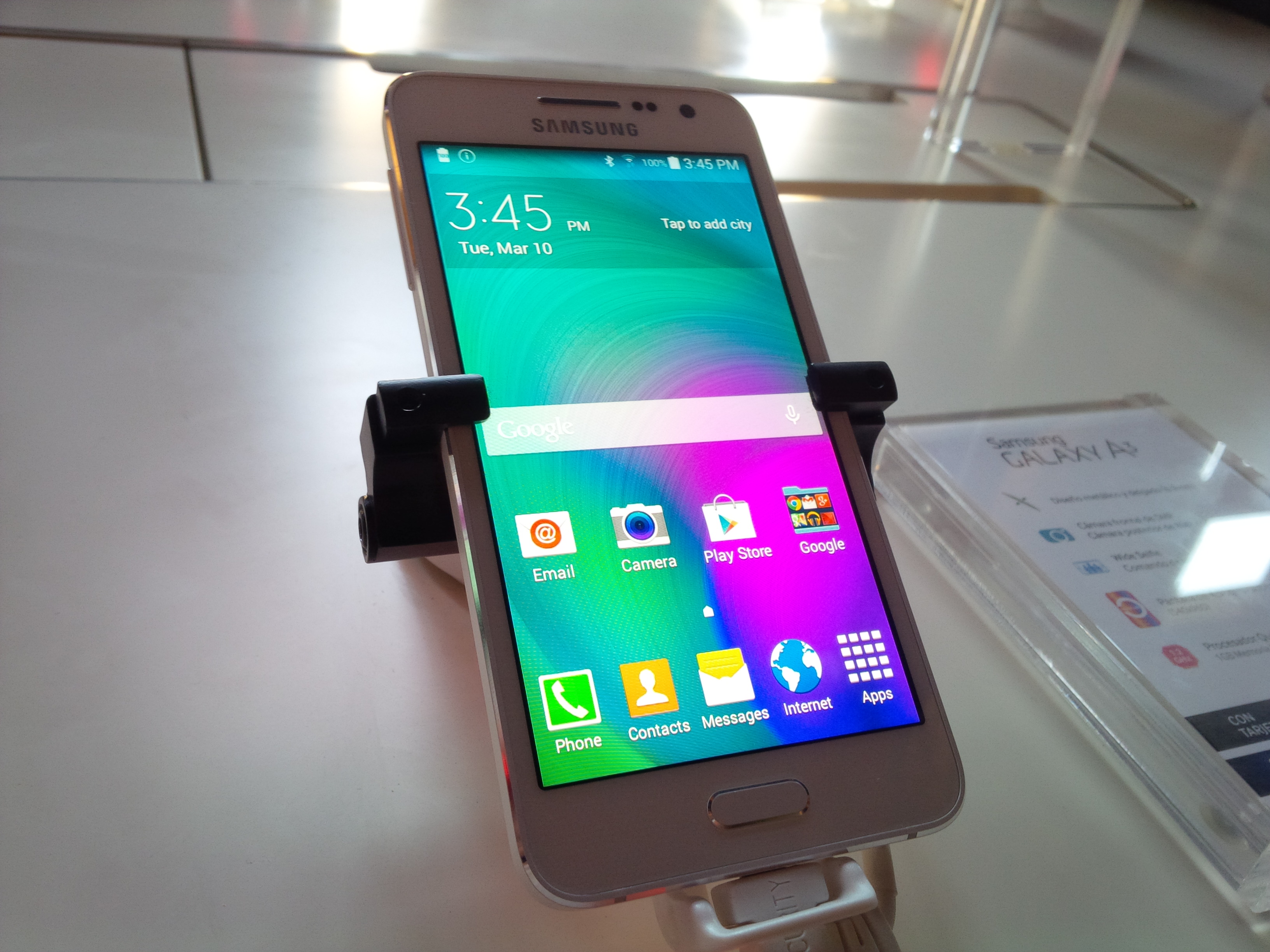 Por otro lado, el Galaxy A3, es el hermano menor del A5, reduciendo algunas de sus especificaciones: la pantalla baja a 4,5 pulgadas con resolución qHD, la RAM a 1,5 GB y la cámara trasera a 8 megapixeles. El resto de las especificaciones son iguales al A5.