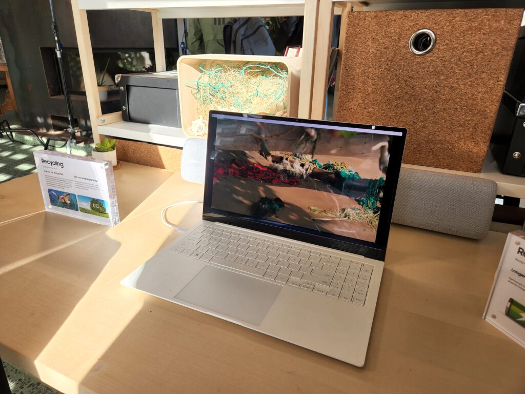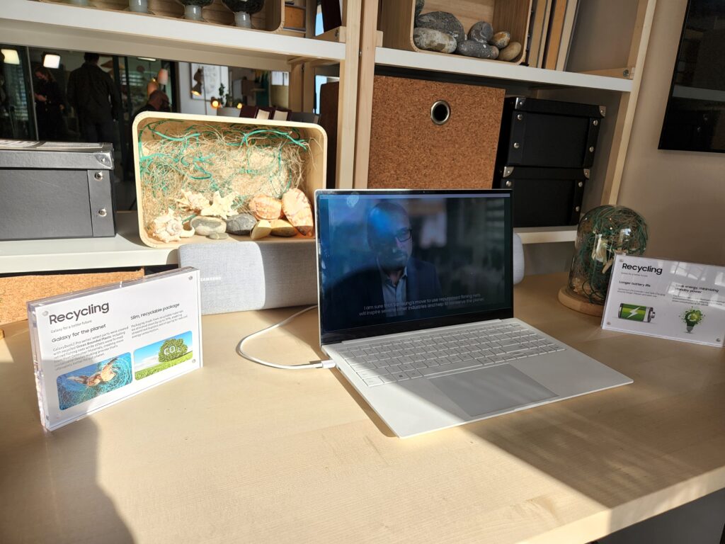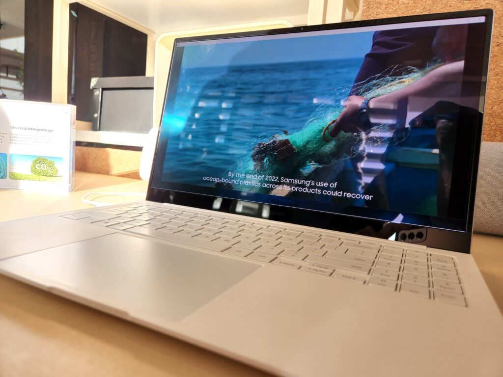 Finalmente, contamos con tecnología para Smart Things que nos permitirá prender las luces, controlar termostatos o incluso controlar nuestras cámaras de seguridad desde el panel Smart Things, y no está de más decir que el panel táctil de las nuevas Galaxy Book 2 Pro está hecho con la última tecnología de reciclaje de la marca coreana, así que el mismo está hecho con elementos reciclados de las redes de pesca del mar.