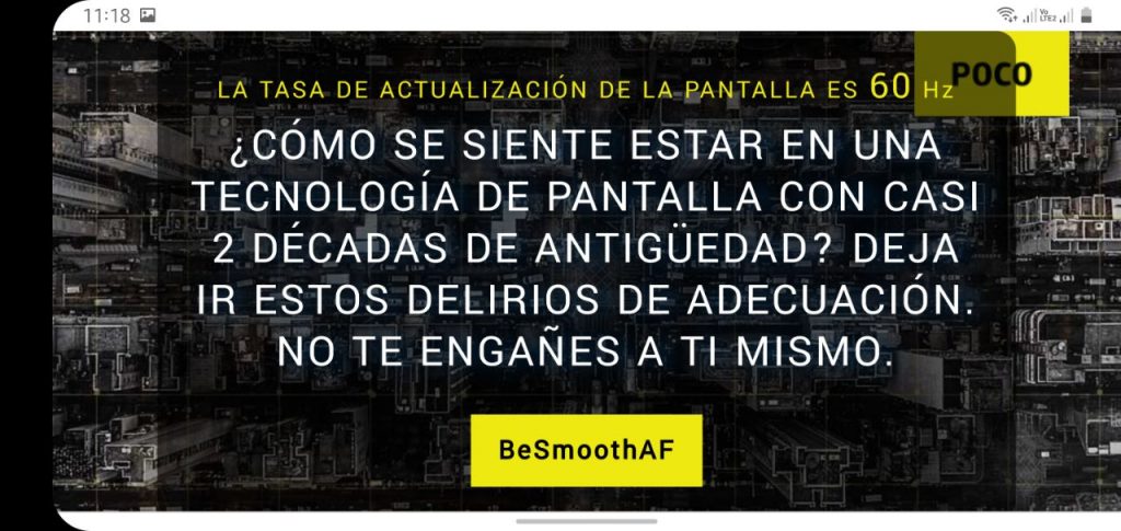 POCO ha habilitado un sitio web el cual identifica la tasa de refresco de la pantalla de tu Smartphone y te pregunta cómo se siente usar una tecnología de pantalla de casi 2 décadas de antigüedad.